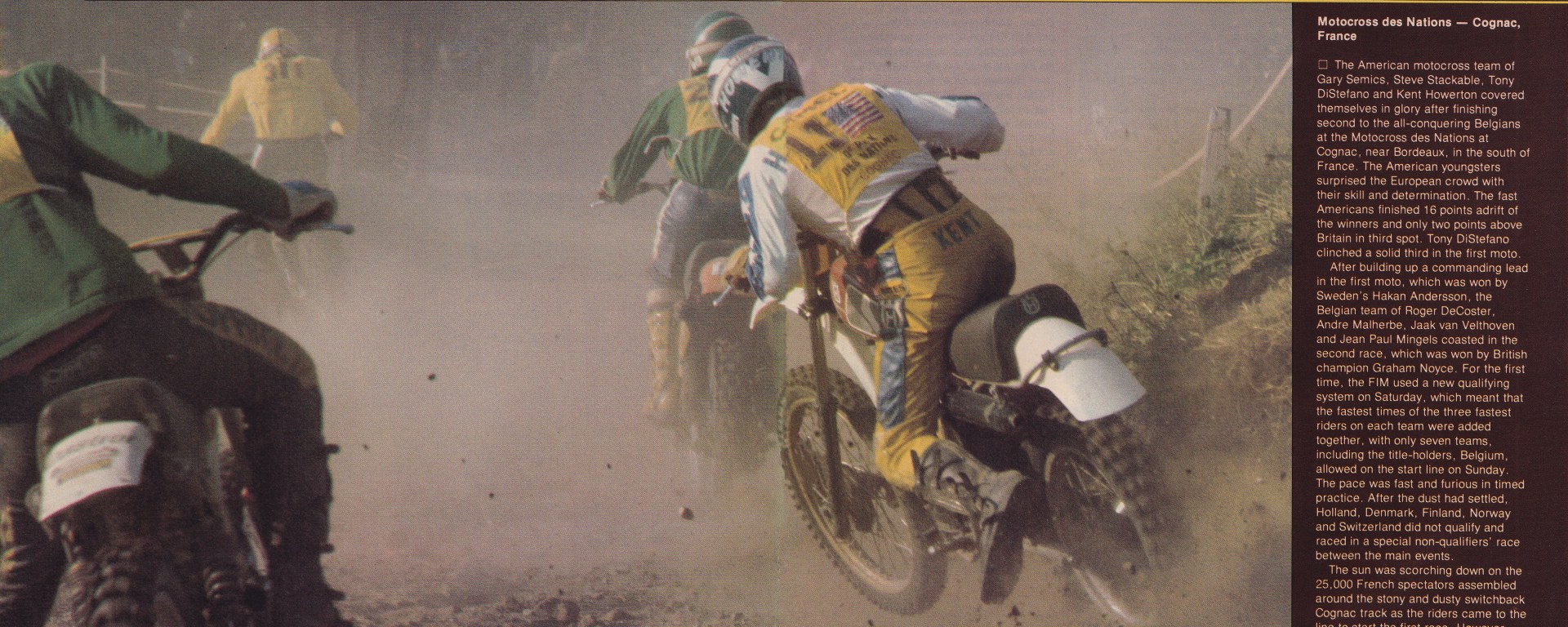 Here is a look back at Motocross Action’s coverage of the 1977 Motocross (500) and Trophée (250) des Nations. This year our team consisted of Kent Howerton, Tony DiStefano, Steve Stackable, and Gary Semics.
