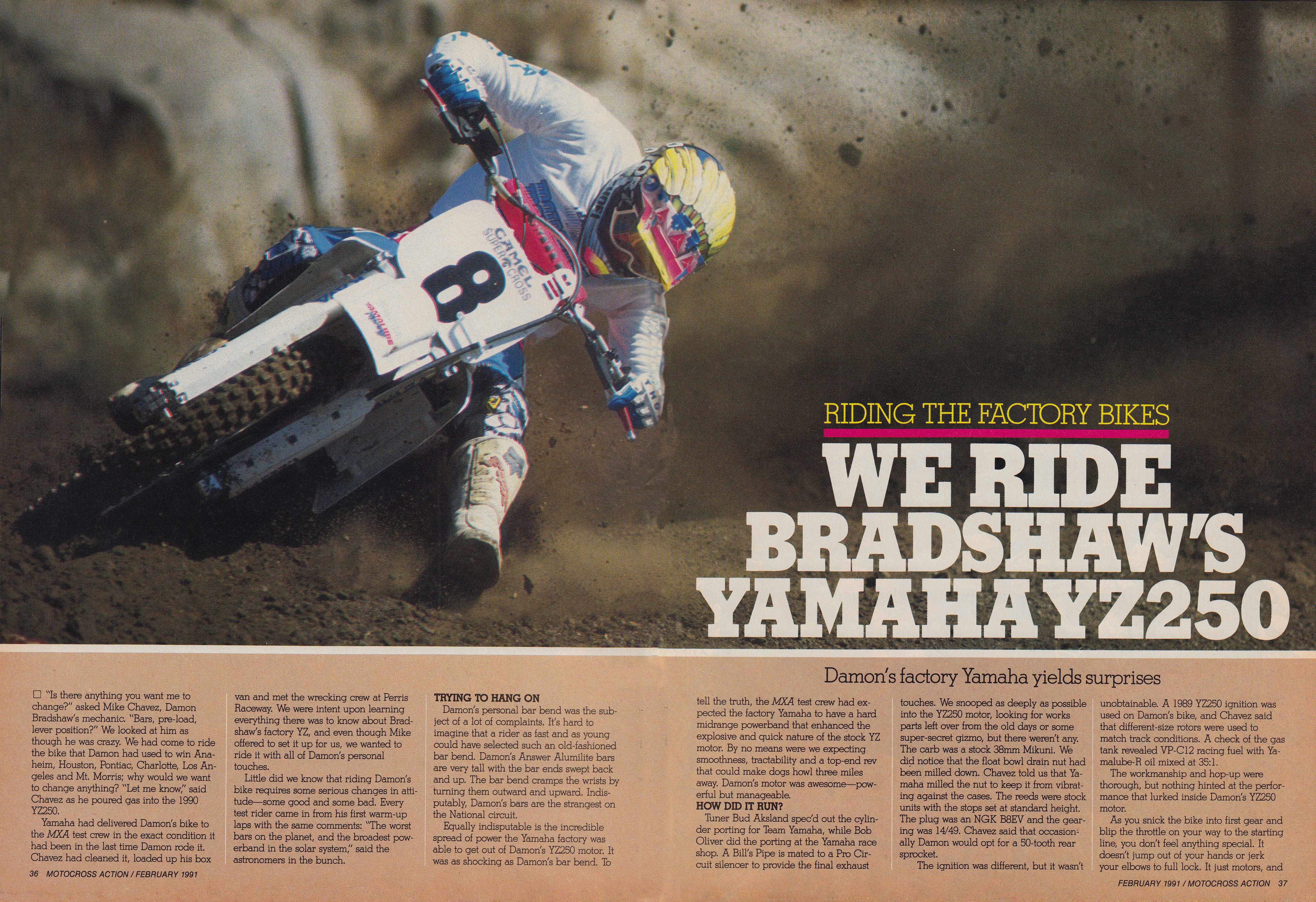 MiscMotocross Action testing Damon Bradshaw’s 1990 Factory Yamaha YZ250 1990 MXA riding Damon Bradshaw’s Factory Yamaha YZ250Download Share this: Click to share on X (Opens in new window) X Click to share on Facebook (Opens in new window) Facebook Like Loading... Related